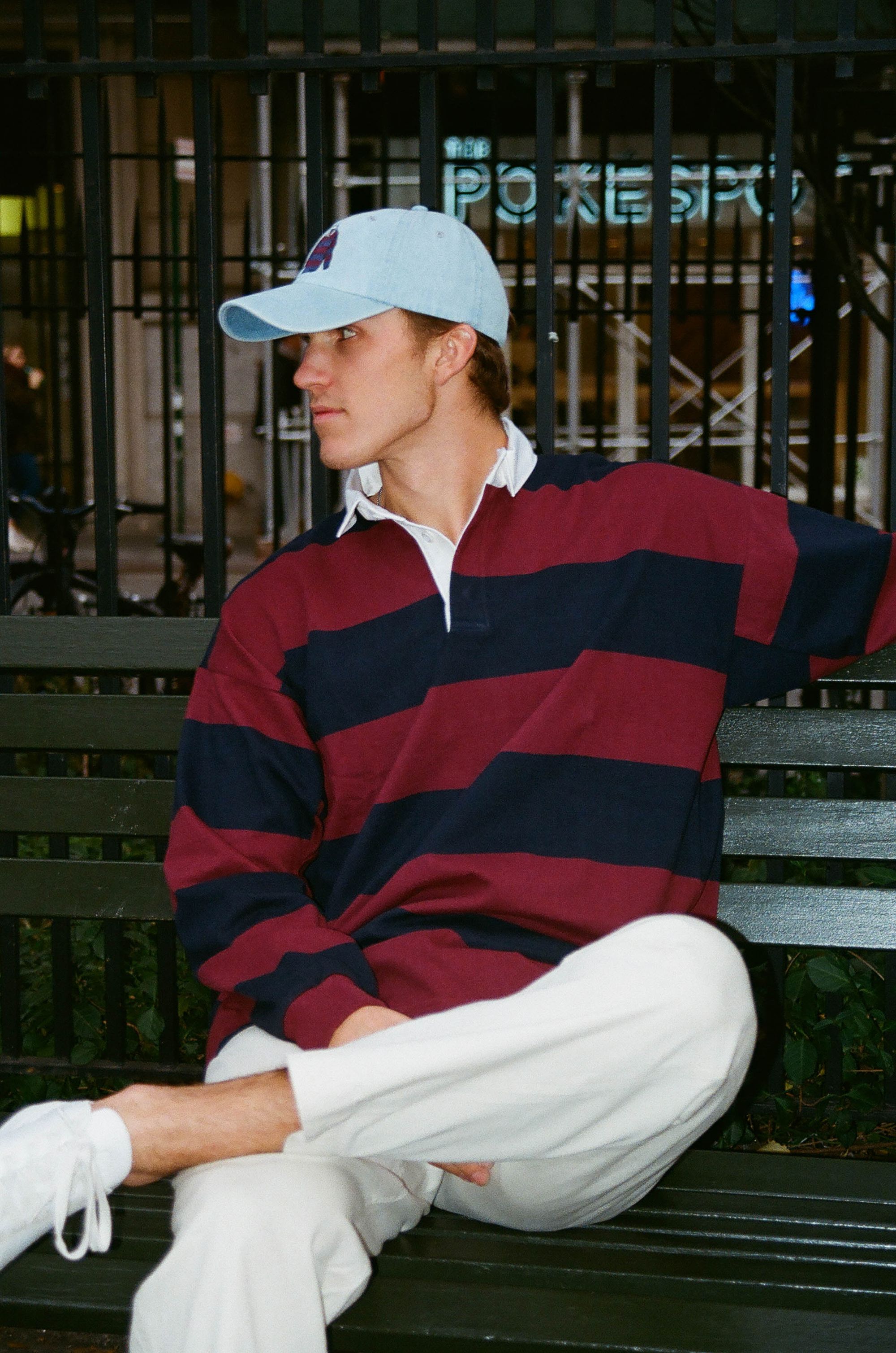 A polo shirt made of heavy cotton jersey with a white contrasting collar and cuffs might be called a rowing-blazers-rugby These usually have a body with large horizontal stripes of white and some other color. They often also have a logo of some sort at the chest. This style lies on the casual end of prep style, and some guys love it. It can be a good way to blend sportswear with tailoring.