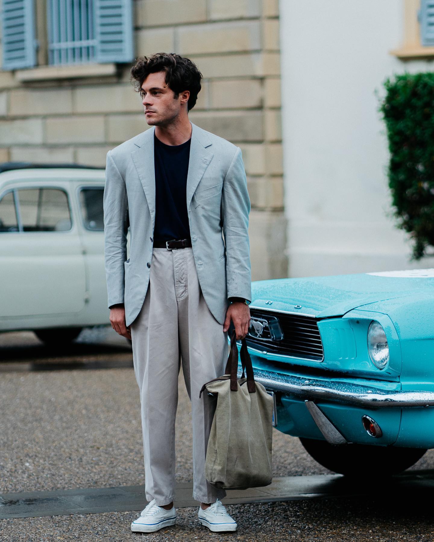 To me, the answer is not to try to find the dressiest sneaker, but to build the whole outfit from a more casual perspective. Casual tailoring is difficult to get right, but I love it. So here's some inspiration.