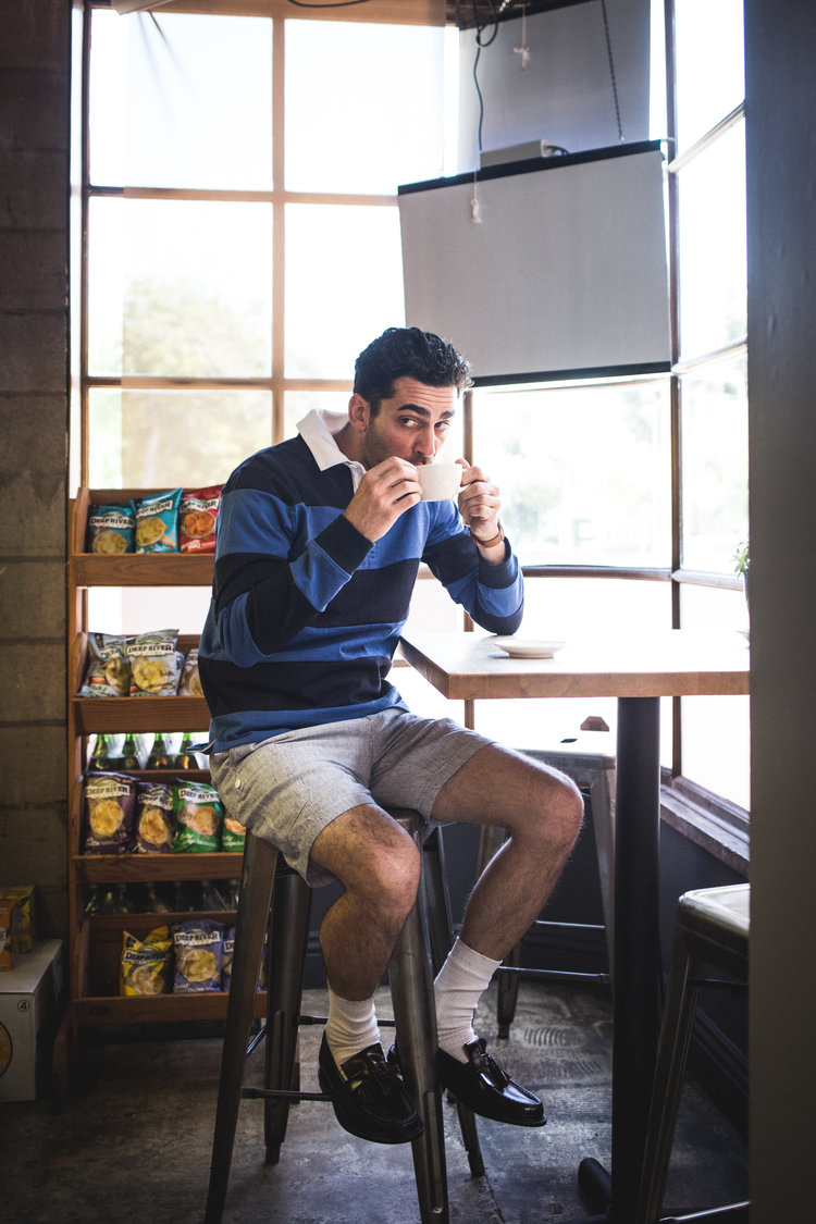 Eric M. Cotecson loves his fuzzy two-tone Paraboot Michaels. The roundness is highlighted, here, at every point of contrast. The navy has a great sheen; the white fuzz looks soft and cozy. Every bit just makes you smile.