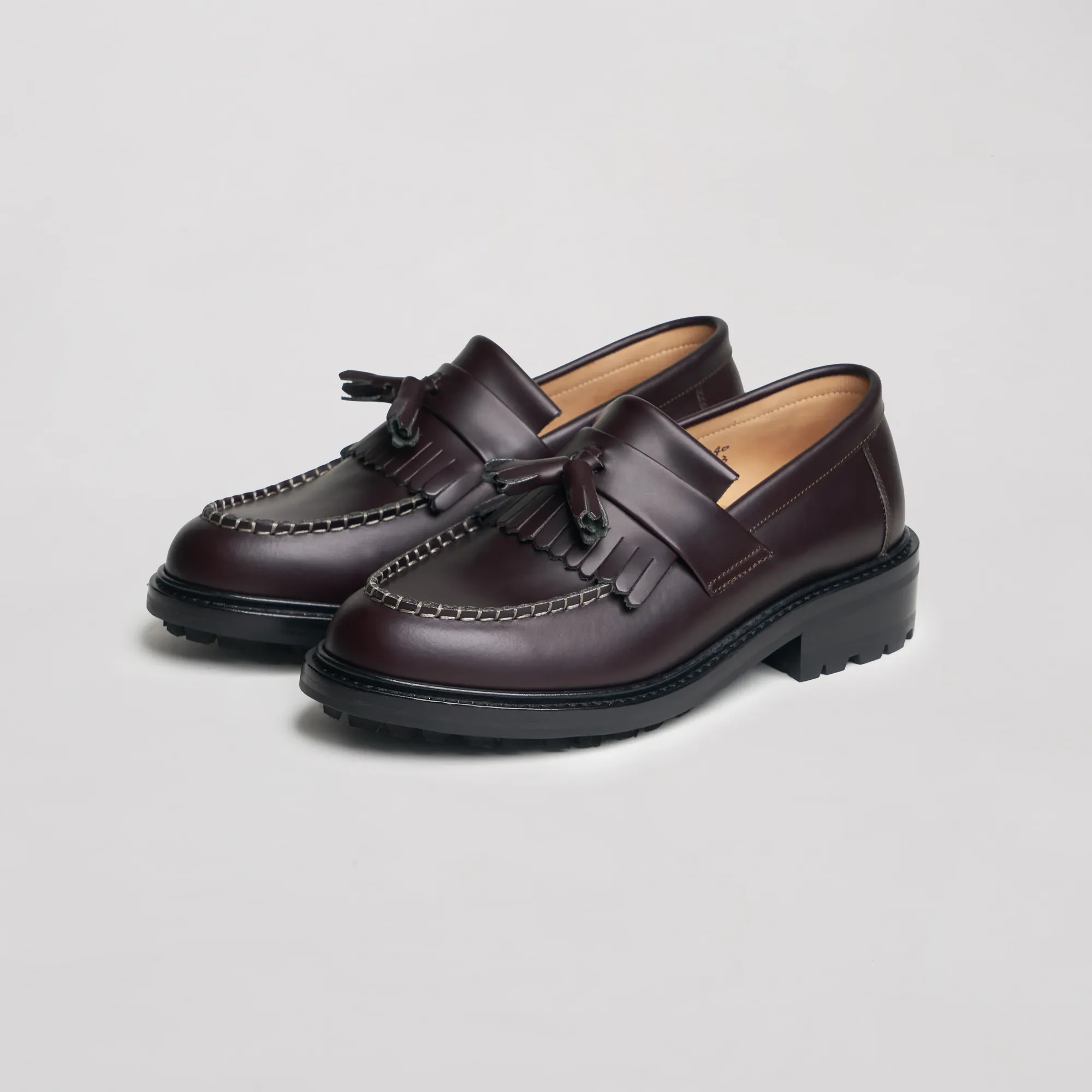 The kilted tassel loafers from Solovair and chenjingkai office, in particular, have a lug sole, and that gives them a certain charm. Lug sole loafers in general are interesting—Blackstock & Weber and FE Castleberry have some cool models—but they aren't stupid enough to put a kilt on a shoe they want to sell. Yet.