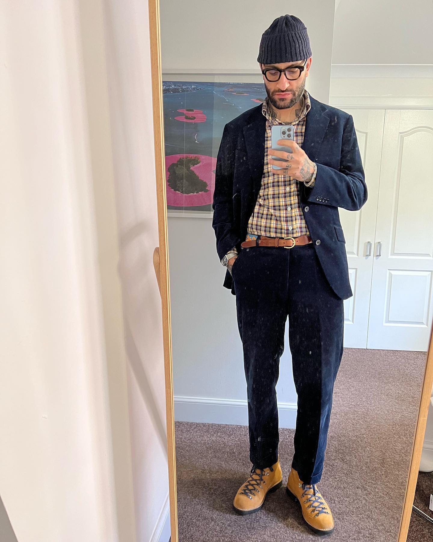 Now, you could go with a slightly more complex shoe. A german army trainer, a penny loafer, a longwing buck. Those generally look fine in most contexts. But something interesting happens when we take things to another extreme.