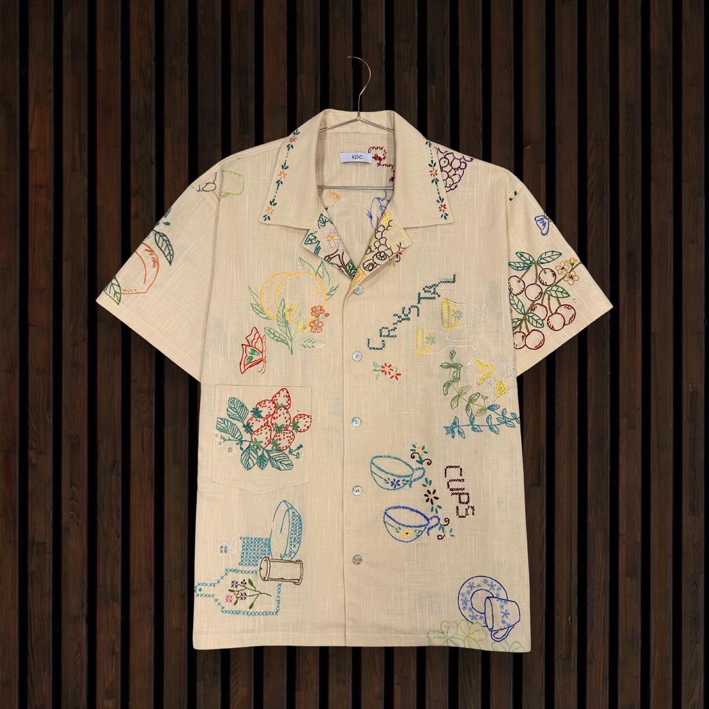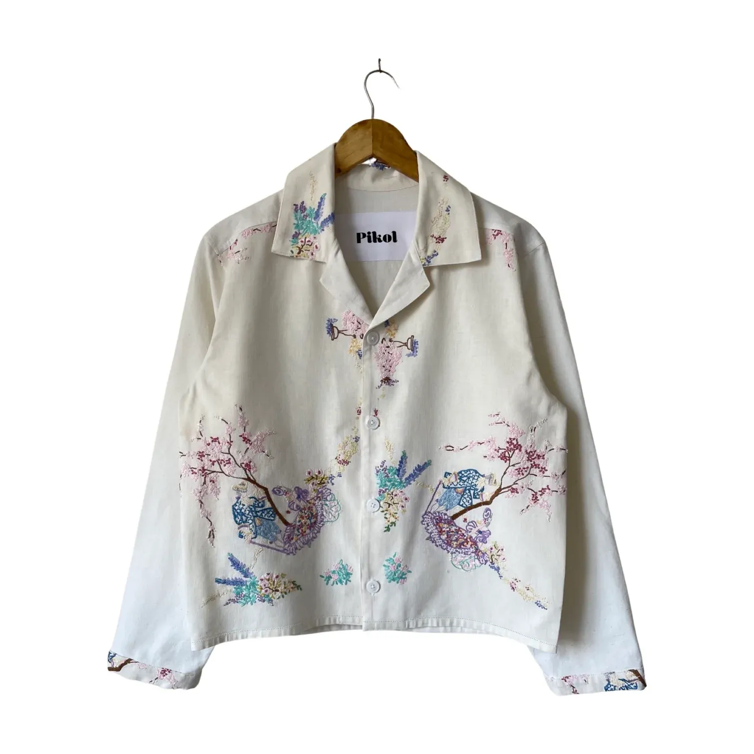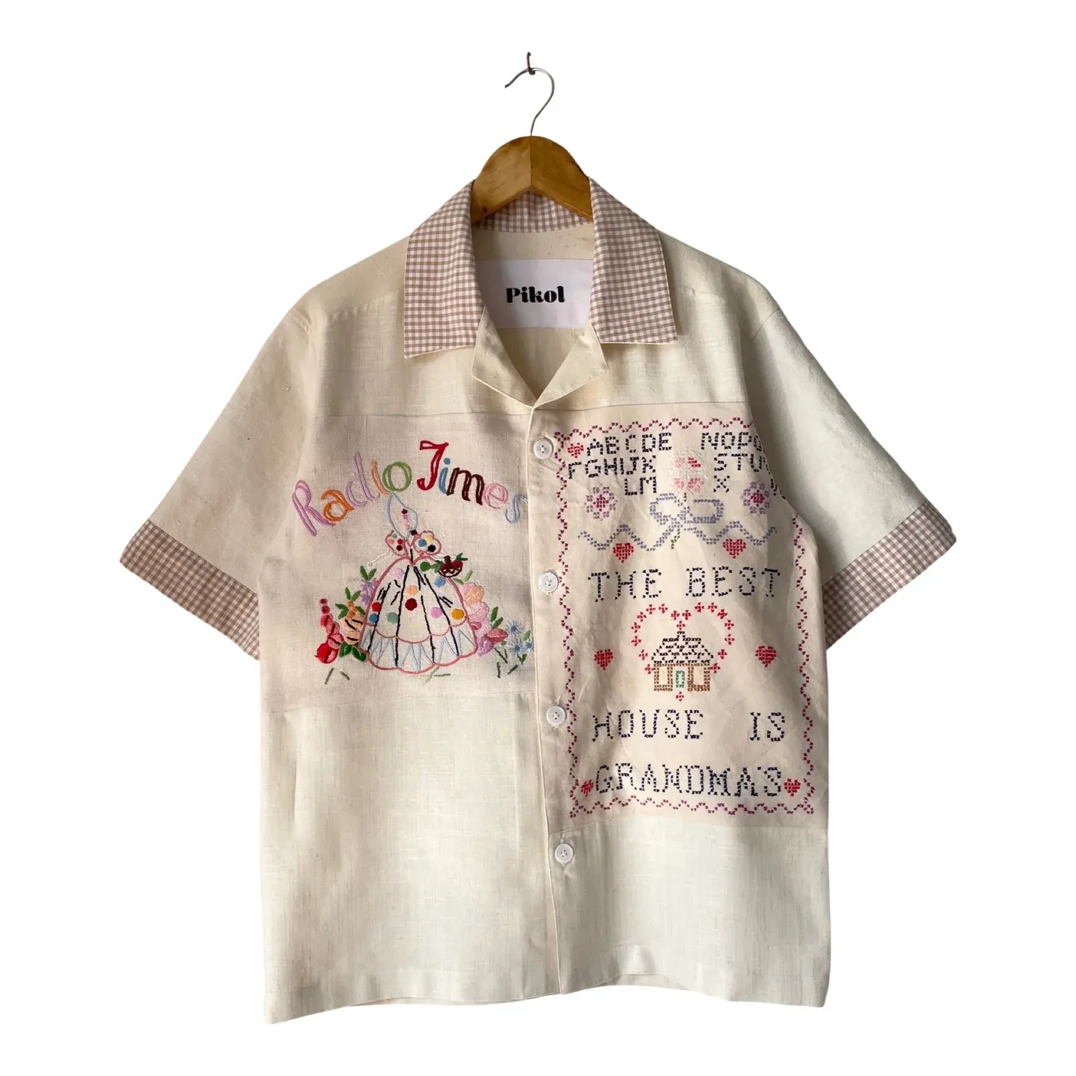 Founded in 2020 by Dan Branston, Pikol makes shirts from "embroidered tablecloths, tea towels, tapestries, antique linen sheets, and blankets." Accordingly, supplies are limited. Shirts come out at 6pm on Fridays, British time, and sell fairly fast. And each one, work of art that it is, has its own unique name.